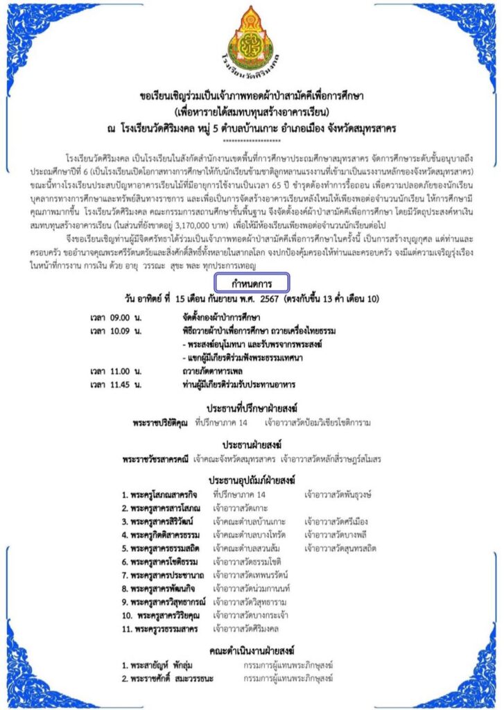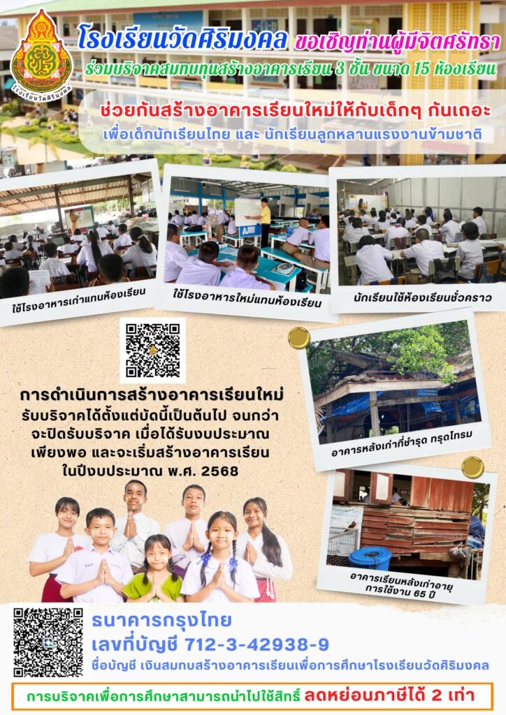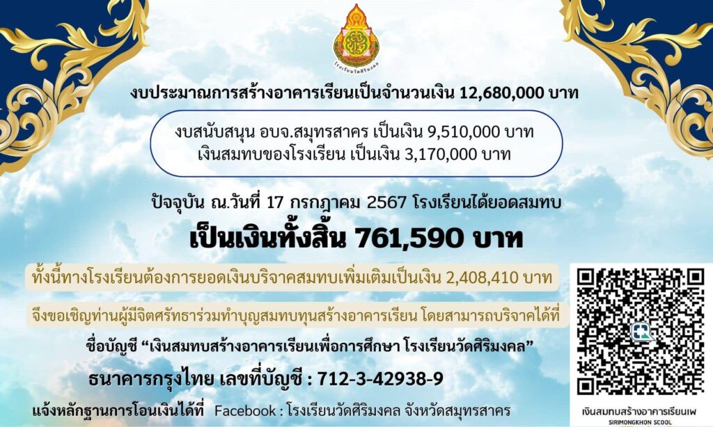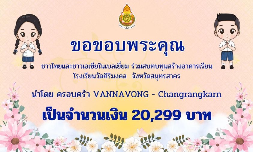 ทางโรงเรียนวัดศิริมงคลขอขอบพระคุณผู้มีจิตศรัทธาทุกท่านเป็นอย่างสูงที่ได้ร่วมทำบุญในครั้งนี้